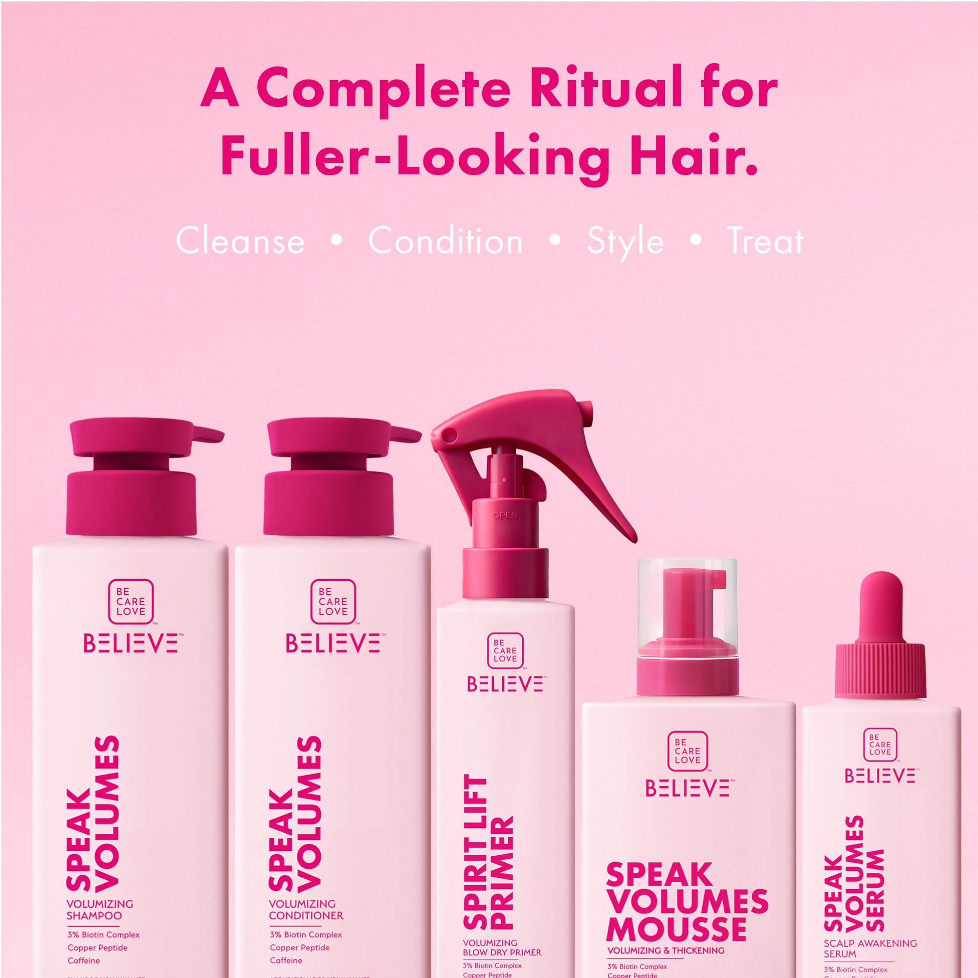 Give your style a powerful boost with a lightweight primer designed to create lasting lift, body, and fullness right from the start of your routine. Infused with a 3% Biotin Complex, copper peptides, and caffeine, this targeted formula helps strengthen strands, support scalp vitality, and enhance the appearance of thicker, more resilient hair.
