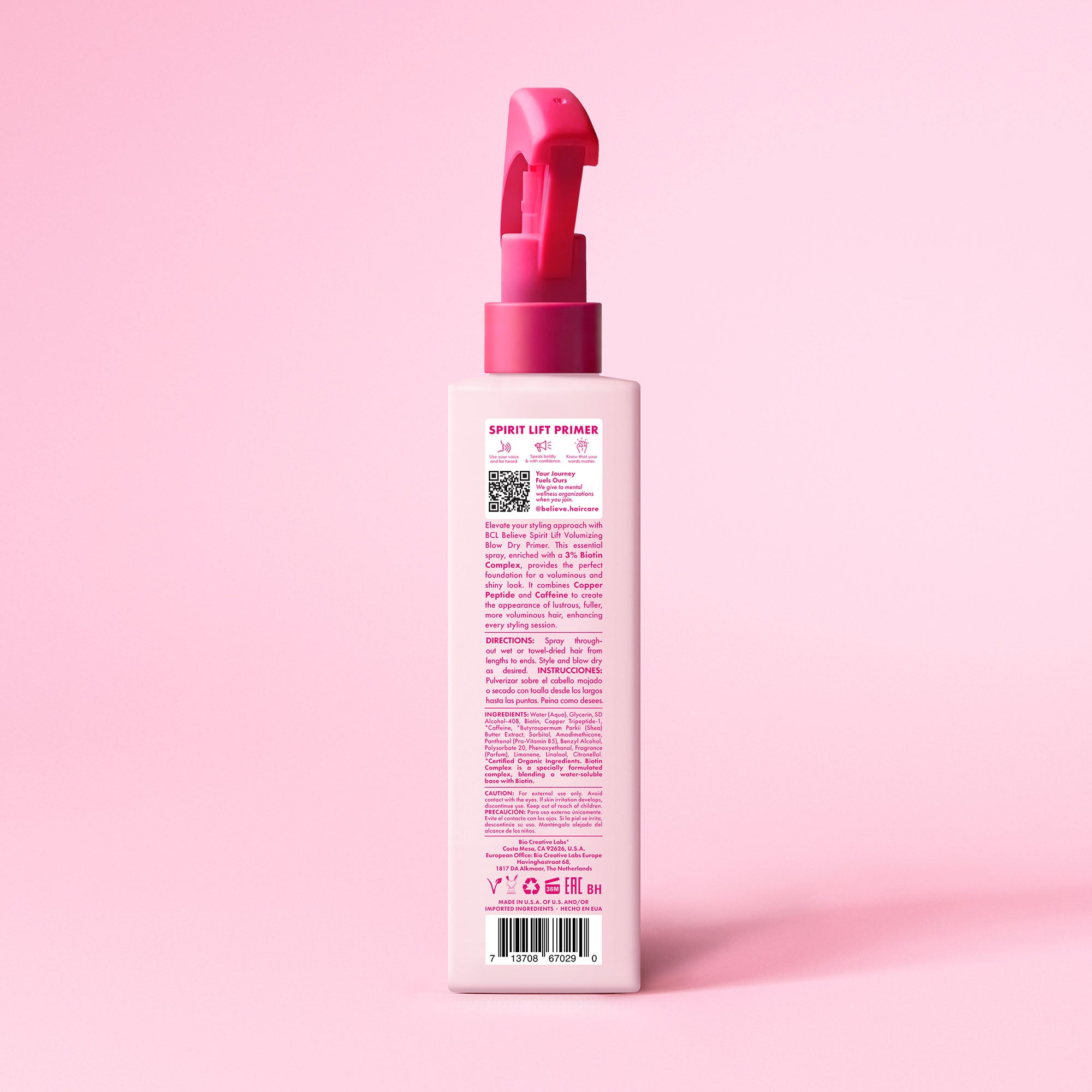 Applied before blow-drying, it smooths, protects, and preps each strand for enhanced volume and touchable texture—without stickiness or buildup. Perfect for fine, flat, or easily weighed-down hair, Spirit Lift Primer delivers instant lift, long-lasting shape, and a fuller, more confident look with every style.